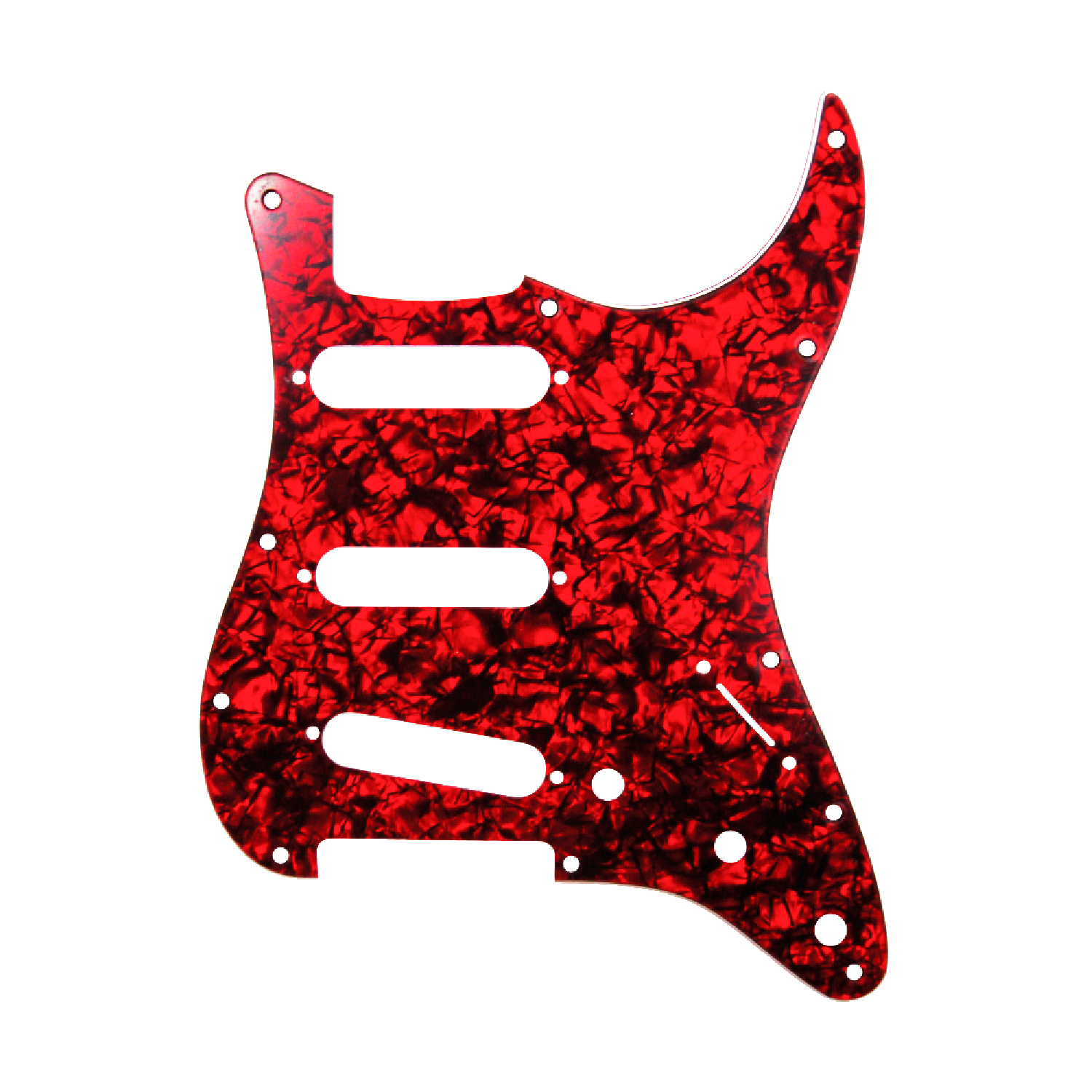 • Cada pickguard tiene 11 agujeros para atornillar, 3 ranuras para pastillas single-coil , ranura para cambio de pastillas y 3 agujeros para potenciómetros.
