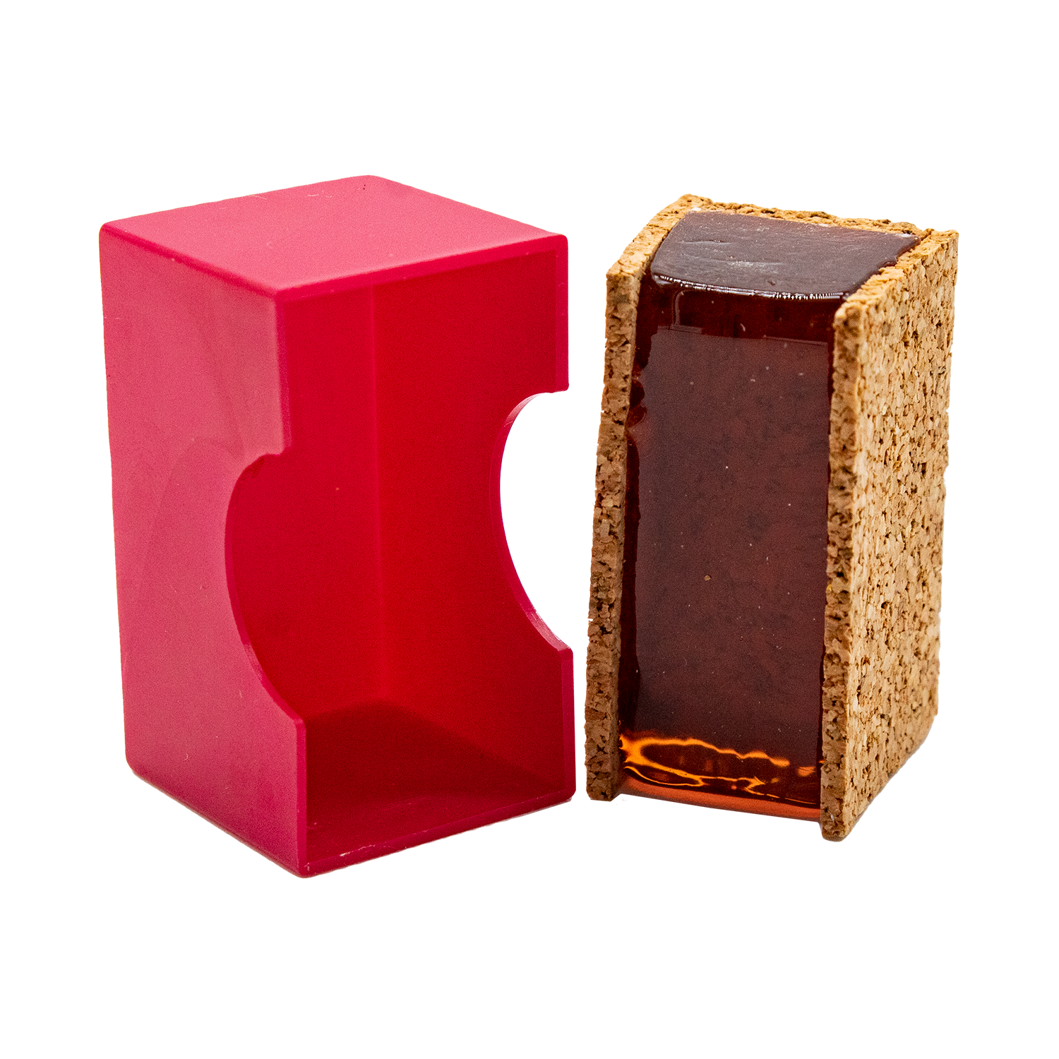 Empacada en un práctico estuche de corcho con cubierta de plástico.