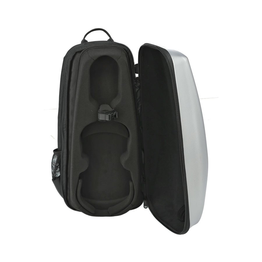 Estuche profesional para Violín con tapa frontal de Policarbonato y estuche por separado para el arco, extraible por un costado, amplio compartimiento para accesorios, sistema de sujeción acolchado, correas de mochila acolchadas y ajustables.