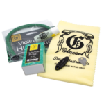 Dentro de este kit se encuentran un pulimento limpiador, un paño suave para pulimento, compuesto para clavijas que facilita la afinación, humidificador, afinador de pipa para la cuerda con nota La, brea para arco y llave para ajuste de barbada. Cuenta además con guía de uso.
