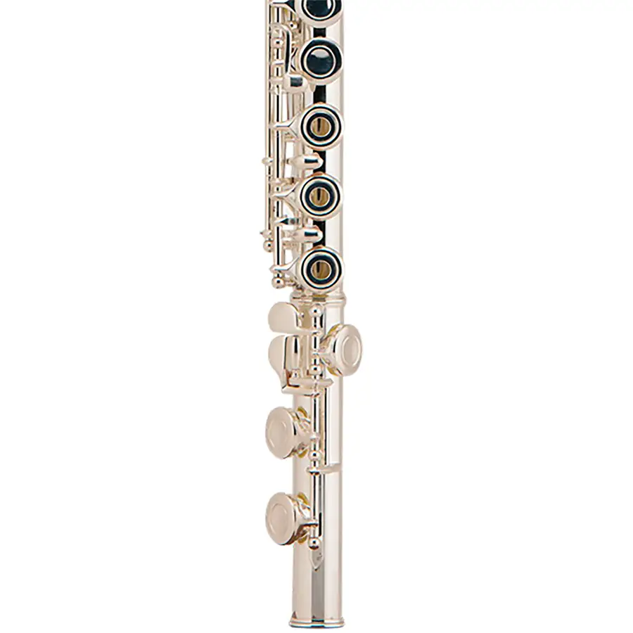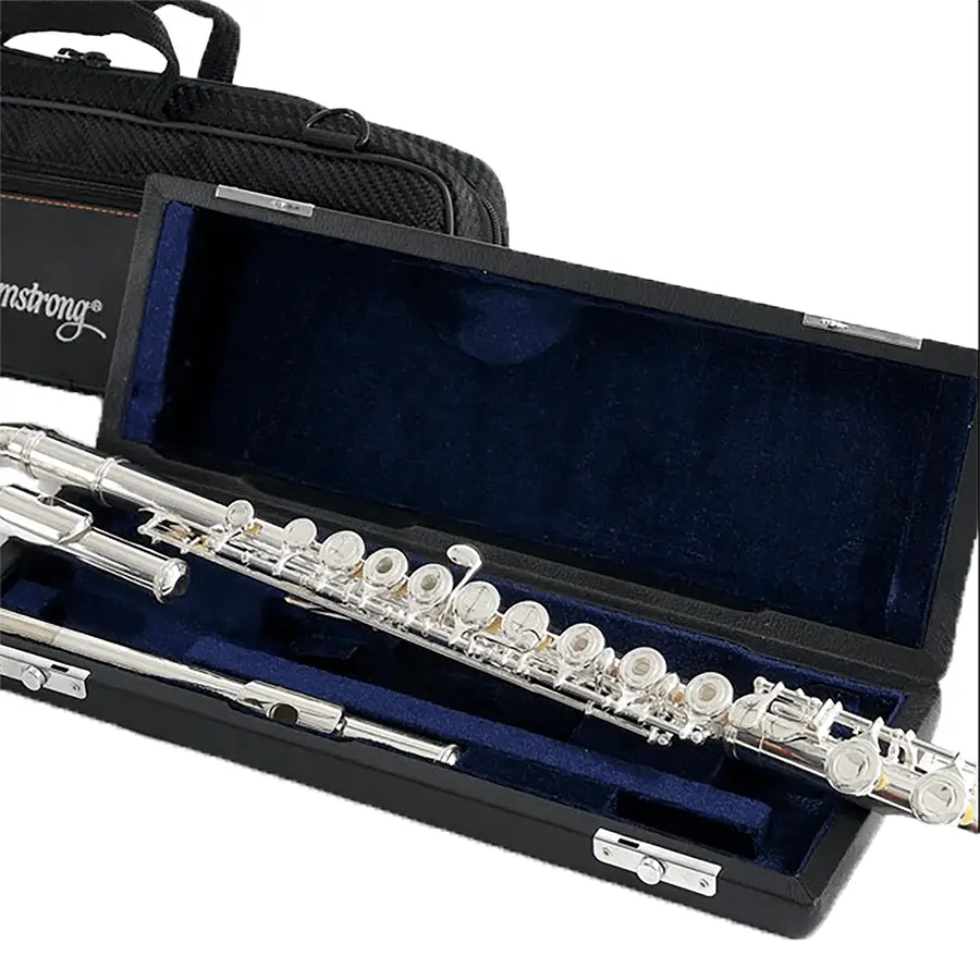 Su cuerpo y llaves están plateadas y tiene una construcción duradera y robusta que la hace ideal para ir a clases. La flauta Armstrong FL650RI2 cuenta con zapatillas Pisoni conocidas por su uso en instrumentos de nivel