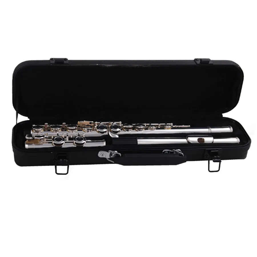 Llaves cerradas, mecanismo de E (Mi) partido, G (Sol) desalineado, pata de C (Do), zapatillas Italianas, terminada plateada, incluye estuche rígido.