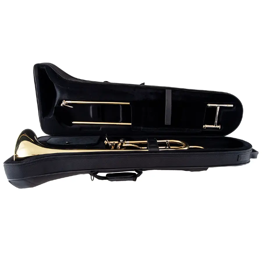 - Los tubos interiores cromados de níquel-plata tienen la superficie ideal para que la acción deslizante sea suave y rápida. Además, el acabado de laca transparente le proporciona una sutil calidez al sonido general.