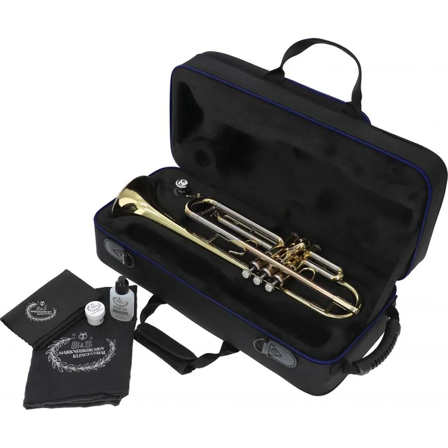 La trompeta B&S Prodige BS210-1-0 tiene gran sonido, ergonomía, fiabilidad y facilidad de ejecución las cuales son las cualidades esenciales de esta trompeta PRODIGE. Esta trompeta viene con  dos tudeles, estándar e invertido, que han sido especialmente diseñados para facilitar el flujo de aire. Se ha prestado especial atención a la precisión del tono. El tudel estándar se caracteriza por un alto grado de precisión, mientras que el tudel invertido crea una mayor apertura de sonido.
