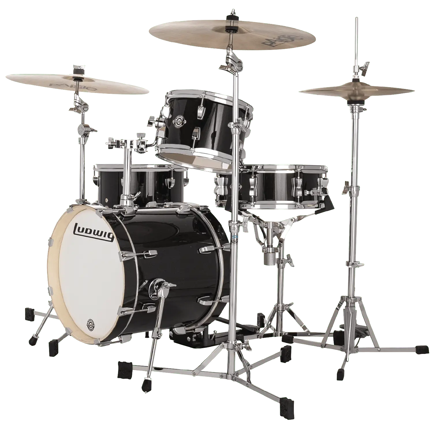 La batería Ludwig Breakbeats consta de 4 tambores, un bombo de 16”, un tom de aire de 10”, un tom de piso de 13” y una tarola de 14”, todos elaborados con madera seleccionada por los especialistas de Ludwig, lo cual nos brinda un tono versátil, cálido, sólido y con mucha respuesta dinámica.