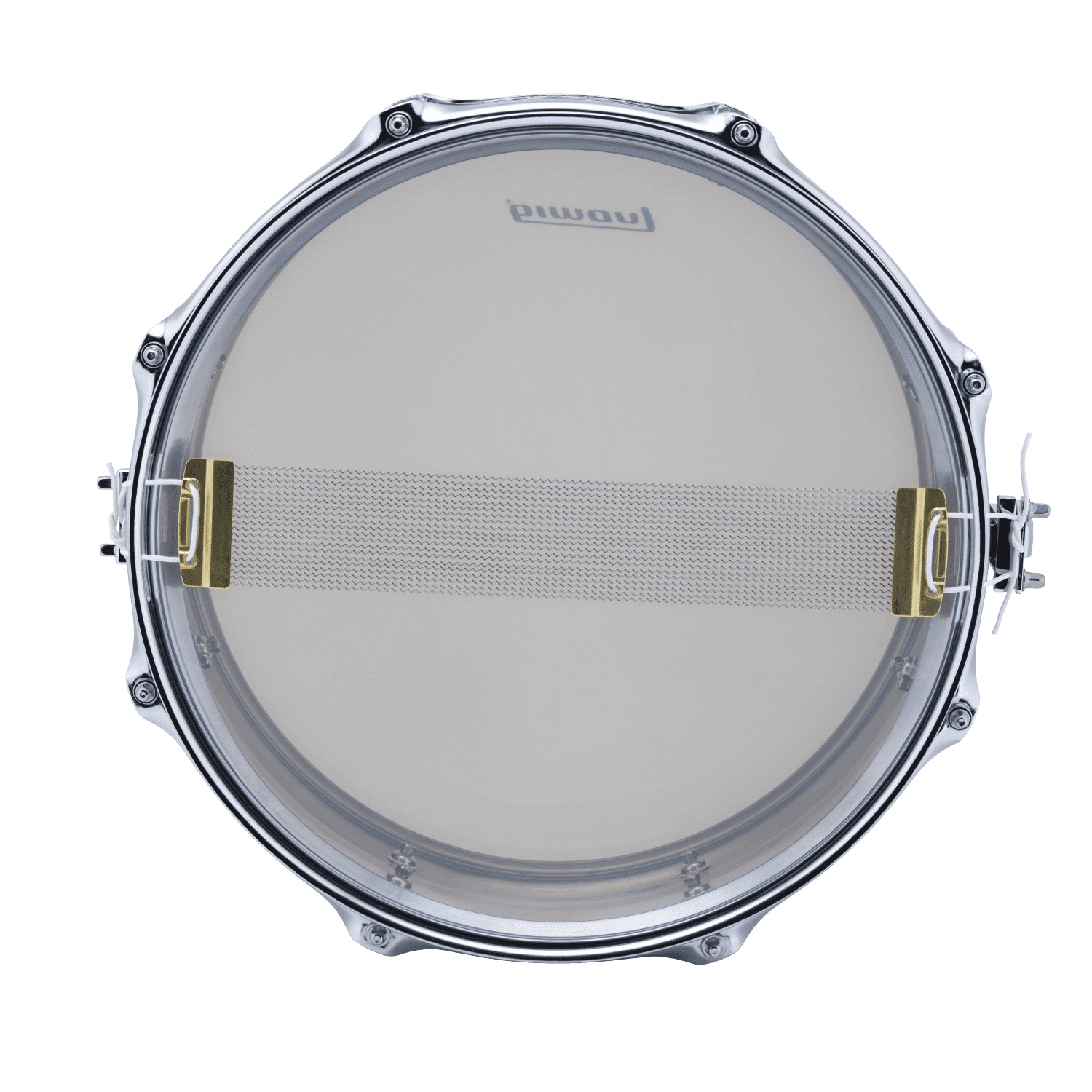 • La Ludwig Supralite está hecha de acero, con un bordeado de 1mm para brindar un sonido cálido y fuerte con una imagen llamativa, tiene aros triple-flanged de 2.3mm, tube lugs de latón cromados y un entorchado de latón.