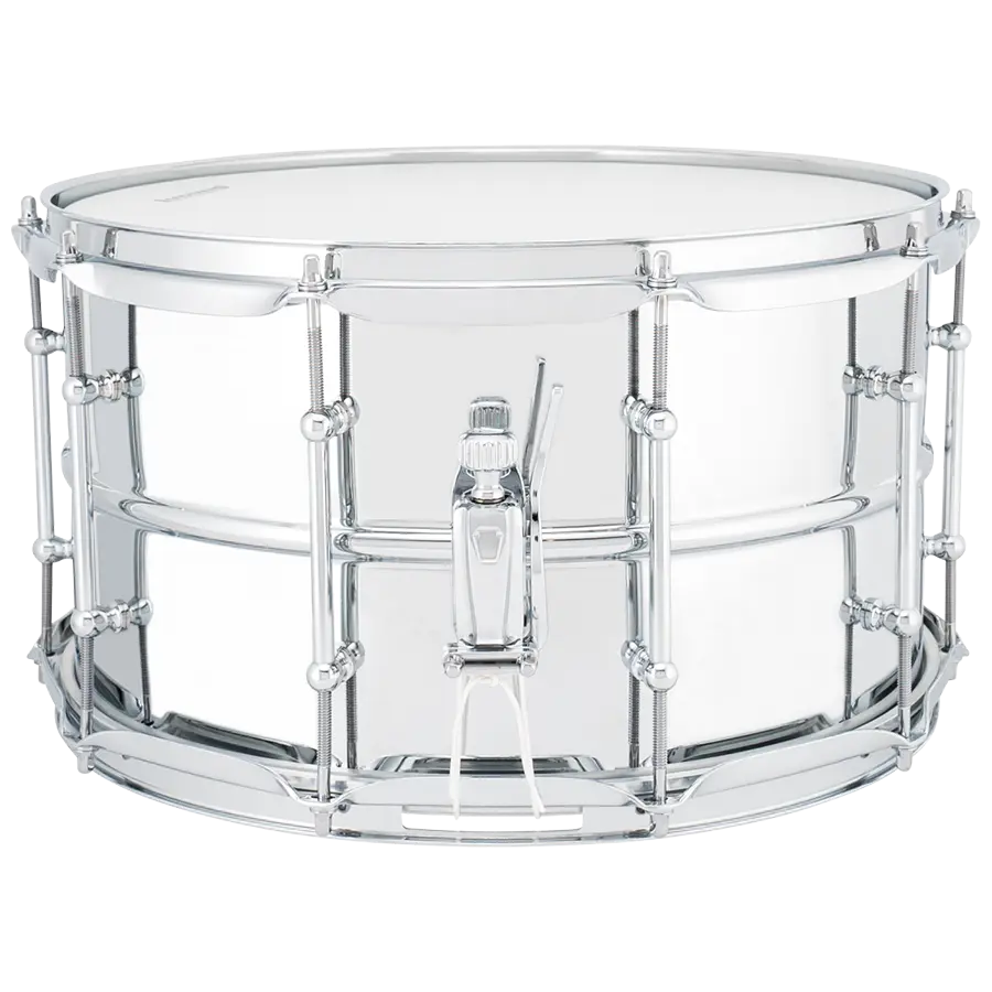 La Tarola Ludwig Supralite 14″x 8″ Modelo LU0814SL está hecha de acero, con un bordeado de 1mm para brindar un sonido cálido y fuerte con una imagen llamativa, tiene aros triple-flanged de 2.3mm, tube lugs de bronce cromados y un entorchado de bronce.