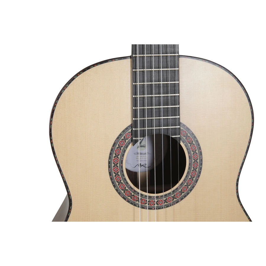 Las Guitarras Manuel Rodríguez se fabrican siguiendo la forma de construcción tradicional Española. Desde Antonio de Torres, a mediados del siglo XIX, esta construcción ha sido el estándar real en la fabricación artesanal de guitarras clásicas. Aquí la guitarra se construye alrededor del mástil. Este se hace primero, con el extremo que luego quedará dentro del cuerpo en forma de L. Esto se puede ver claramente si se mira a través de la boca hacia el cuello de la guitarra terminada. En este extremo del mástil en forma de L hay ranuras en ambos lados en las que se encajan los extremos del mástil, La transmisión de las vibraciones del mástil al cuerpo es, por tanto, mucho más directa. La guitarra tiene una respuesta más rápida, mejor sustain y es significativamente más estable en su construcción general.