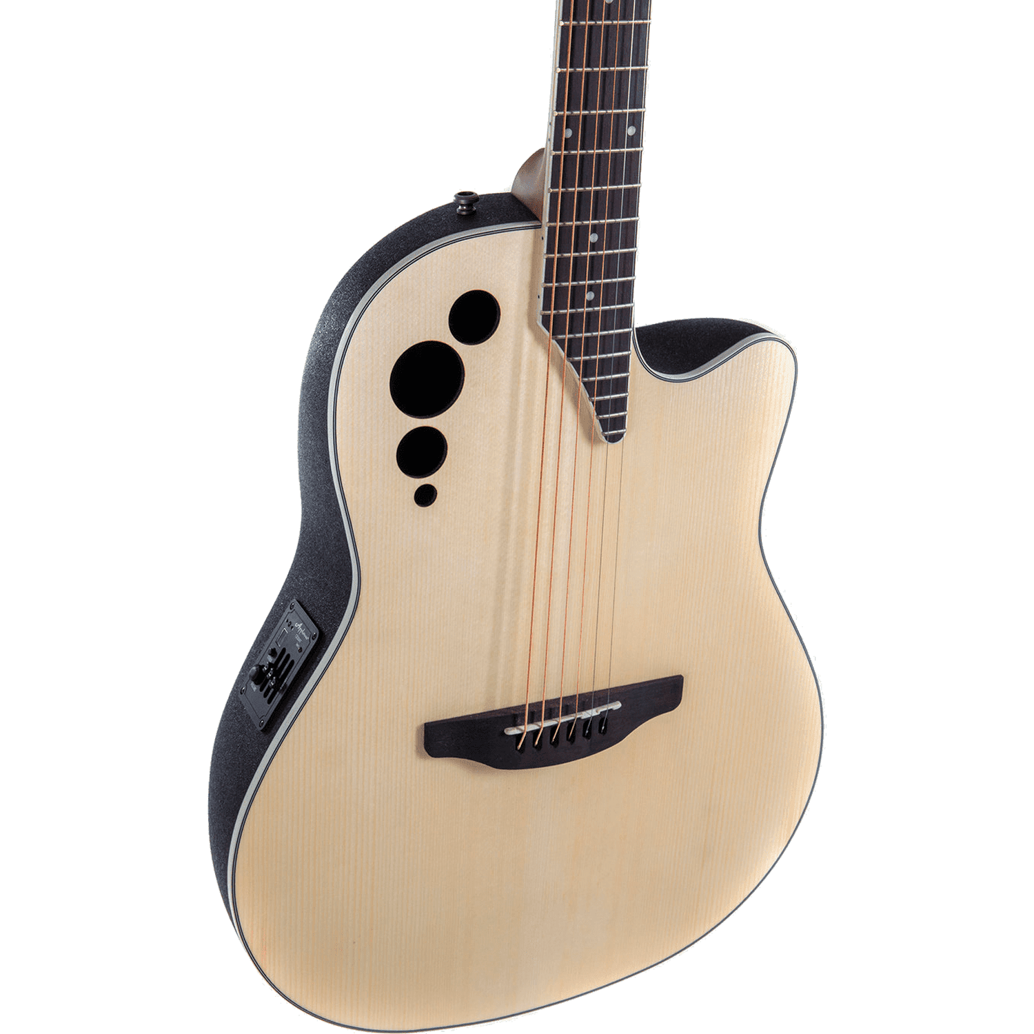 Su caja es de Lyrachord, material único de Ovation que nos promete mayor durabilidad y un sonido bien equilibrado.