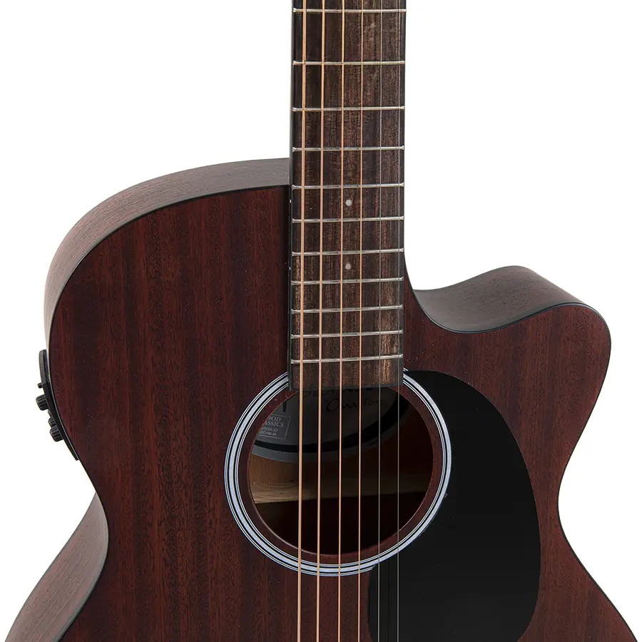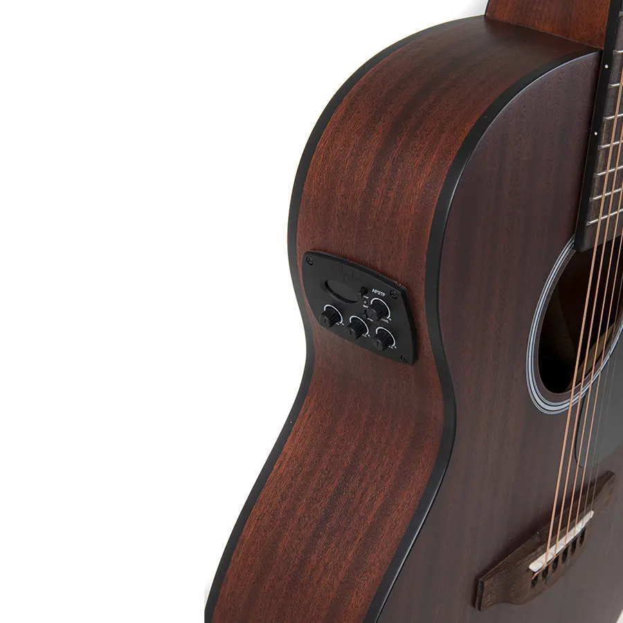 • Esta guitarra está construida completamente con caoba, exceptuando el puente y el diapasón, fabricados de ovangkol.