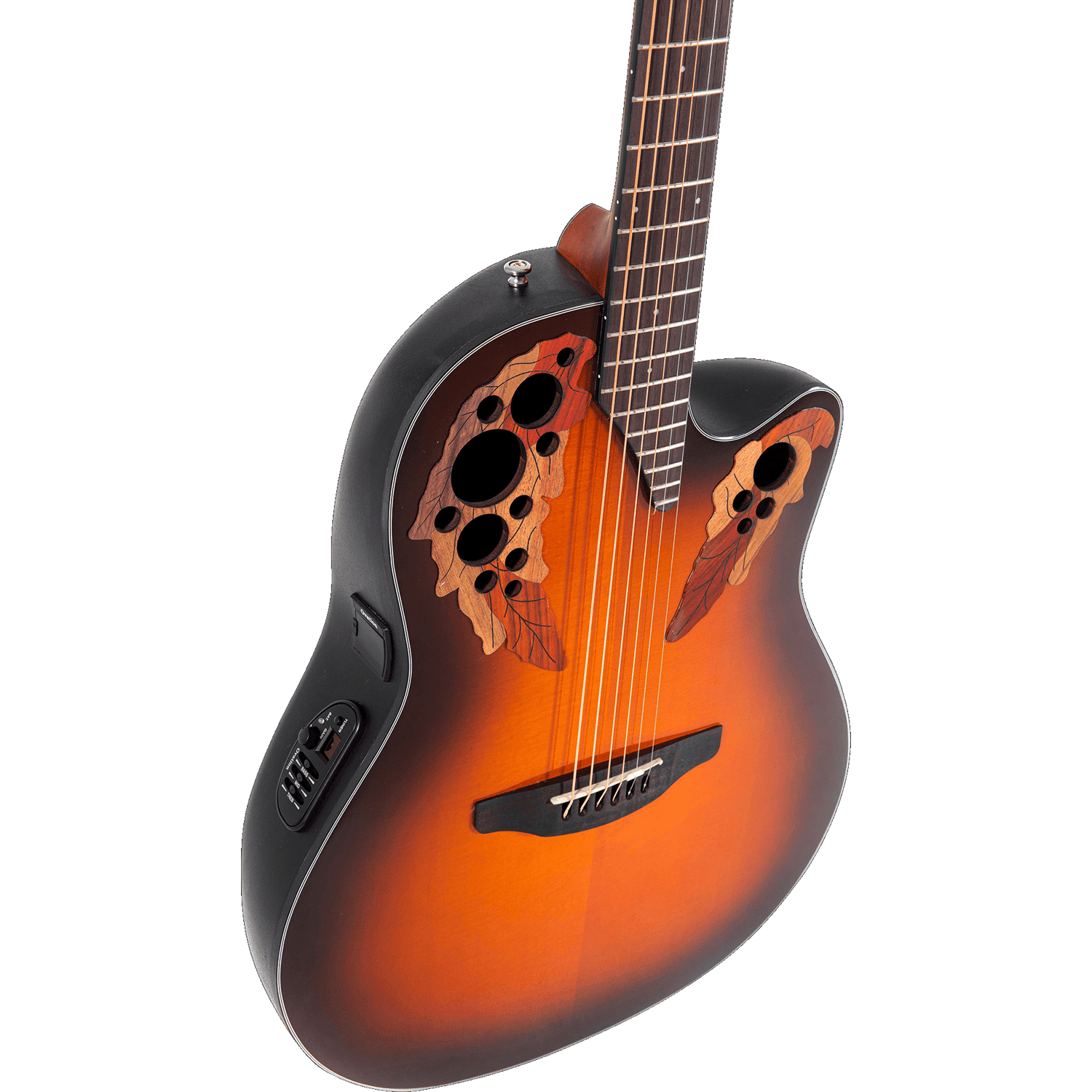 Incluye una pastilla activa original Ovation CP-100 con ecualizador de 3 bandas y afinador, preamplificador OP-4CT.