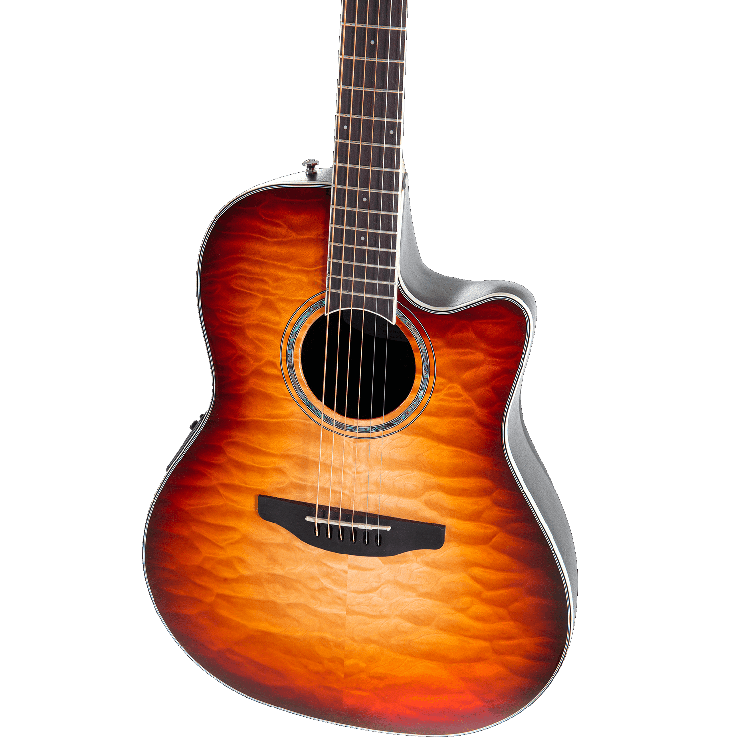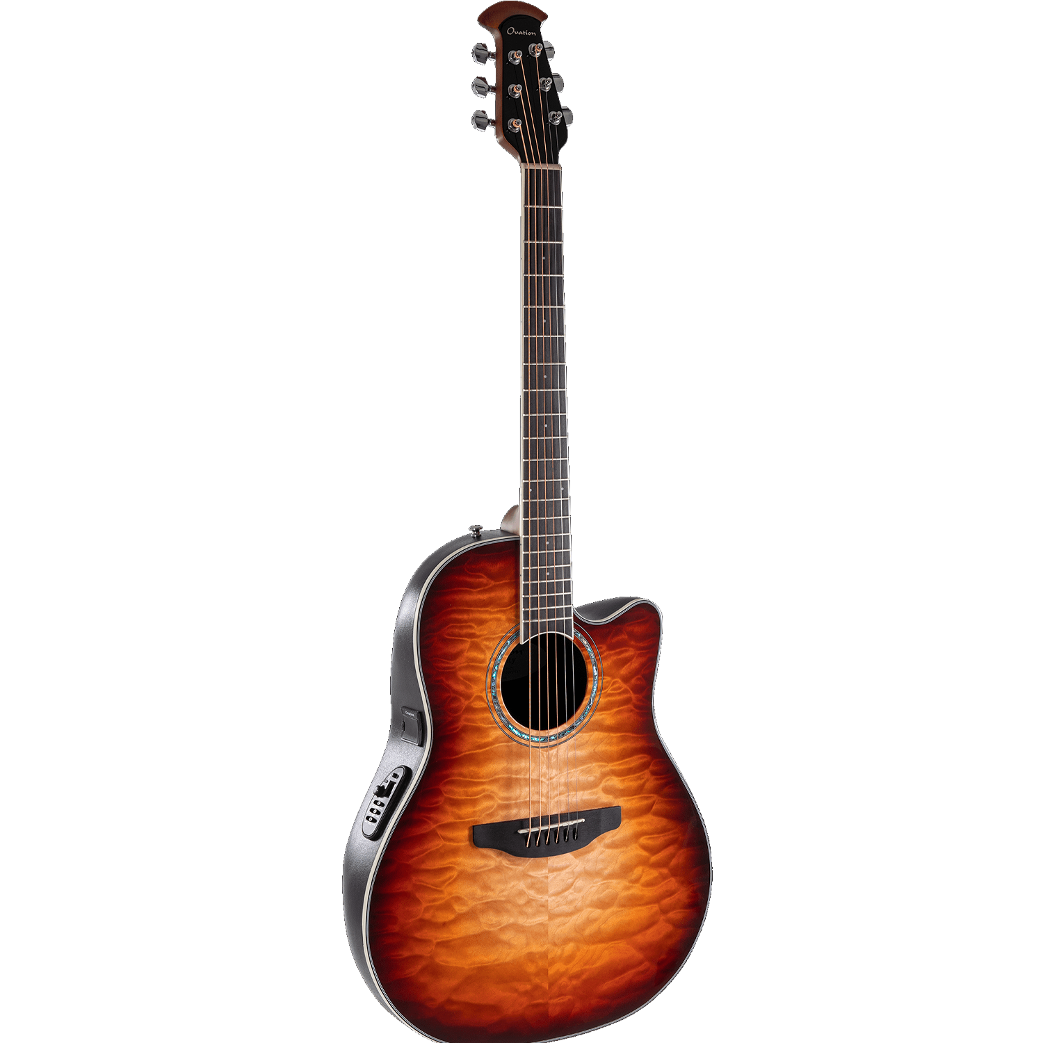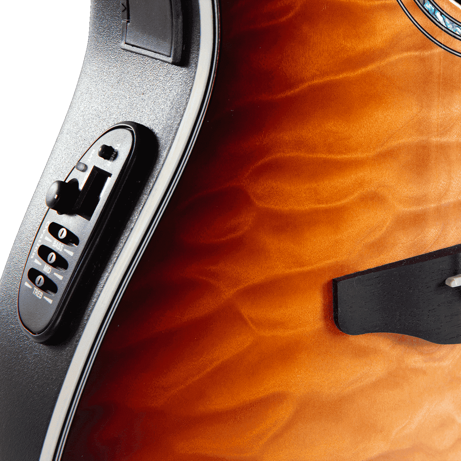 Incluye una pastilla activa original Ovation CP-100 con ecualizador de 3 bandas y afinador, preamplificador OP-4CT.