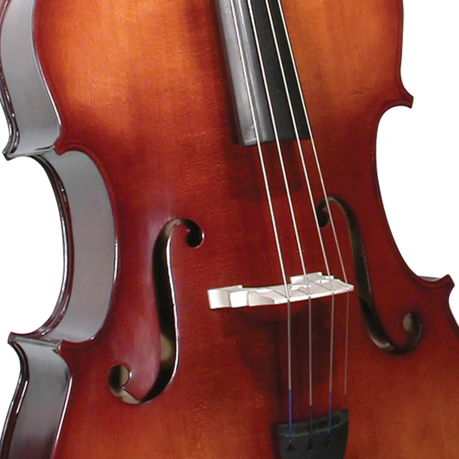 • El cuerpo del Contrabajo Cremona está construido con tapa de abeto macizo tallado a mano y fondo y aros de arce flameado macizo, lo que contribuye a un sonido equilibrado y resonante.